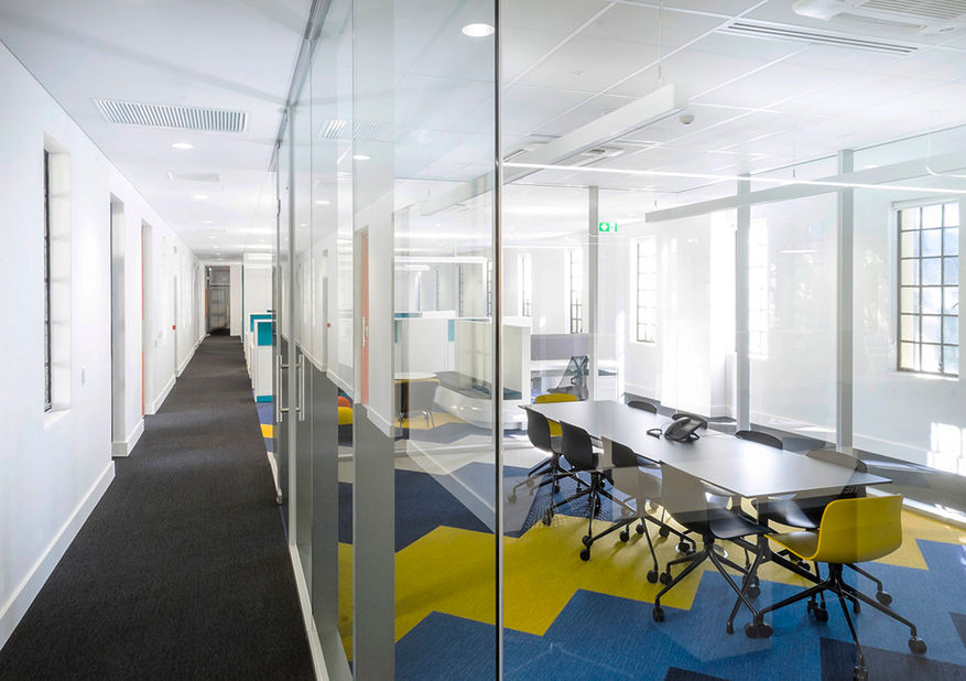 设计团队采用了现代化的内部装饰与现有的建筑产生对比,体现出现有建筑的时代特征,例如钢架窗户、柱廊及庭院等。设计团队利用比较柔和的色调和鲜艳的黄色、粉红色搭配,展现出别致的设计风格。
